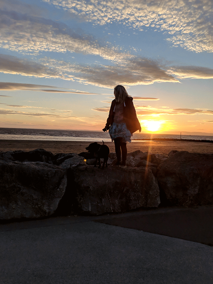 These snaps were taken on a walk a couple of weeks ago. It was sunset and me and my girlfriend took our dog to the beach for a walk. These photographs are taken against the setting sun. The back lit scenes created these silhouette effects. The dog keeps running in and out of the pictures. Initially we were trying to get the a nice picture of each of us with the dog. The dog is too excited to stay still and we ended up with these beautiful puppetry like scenes.