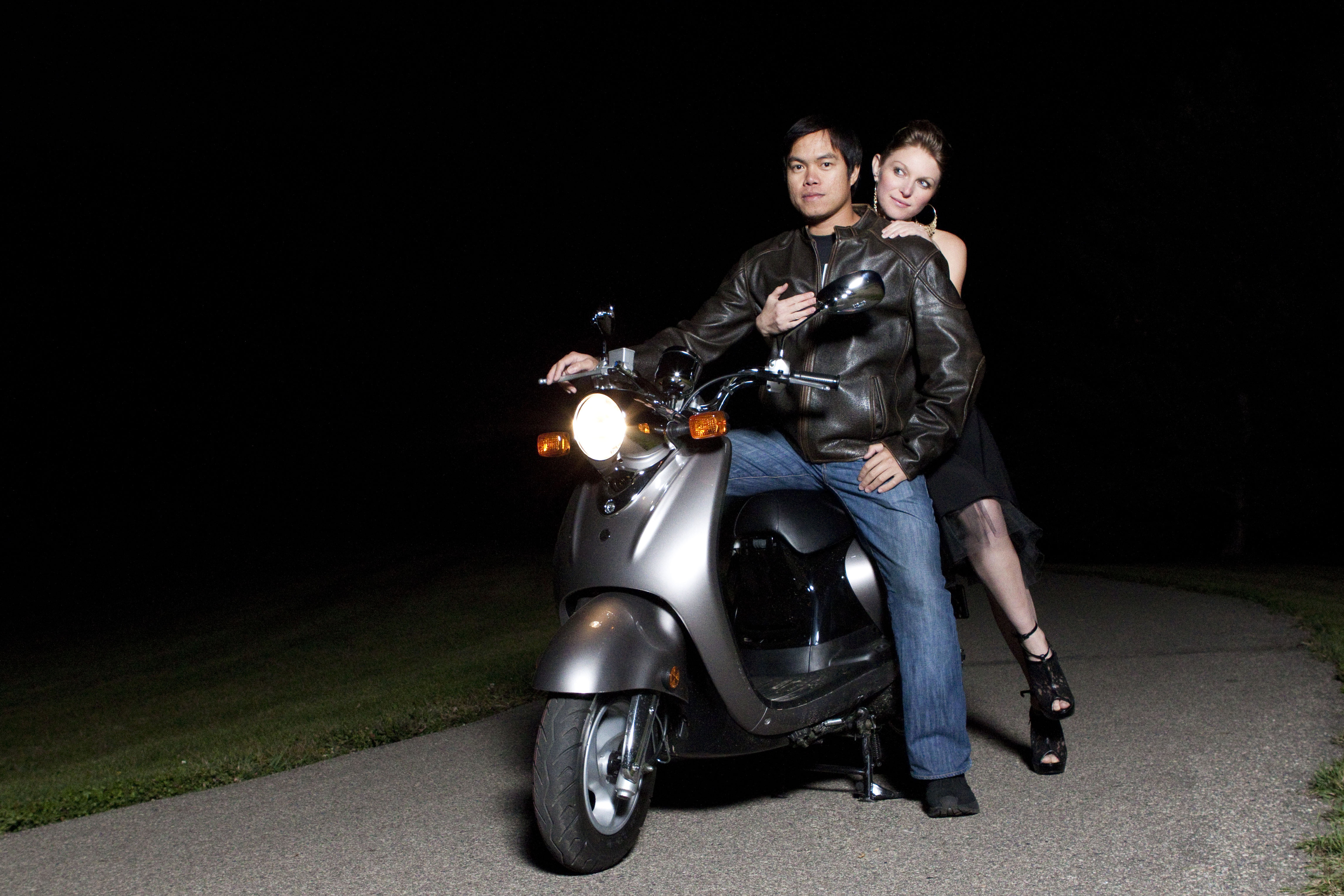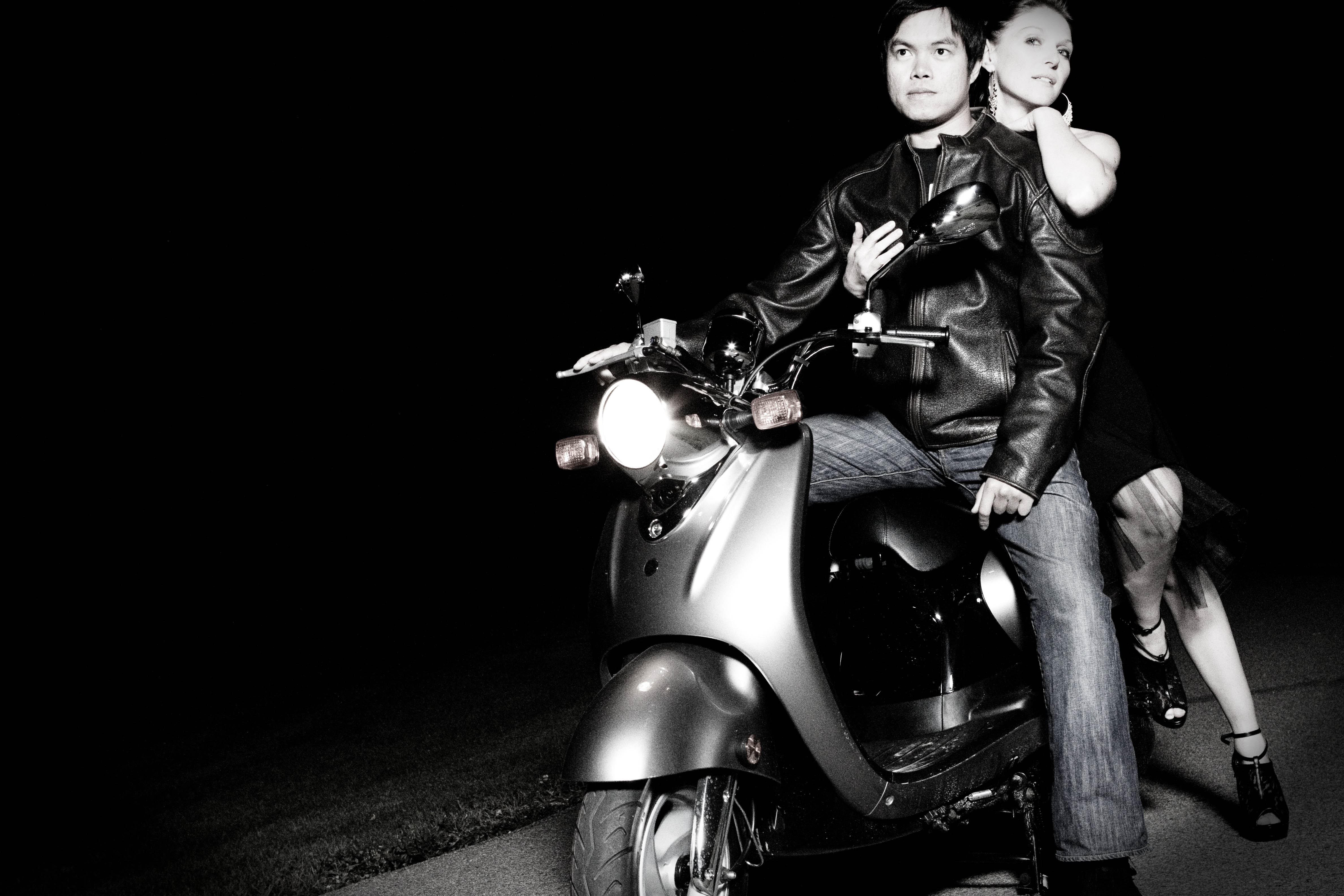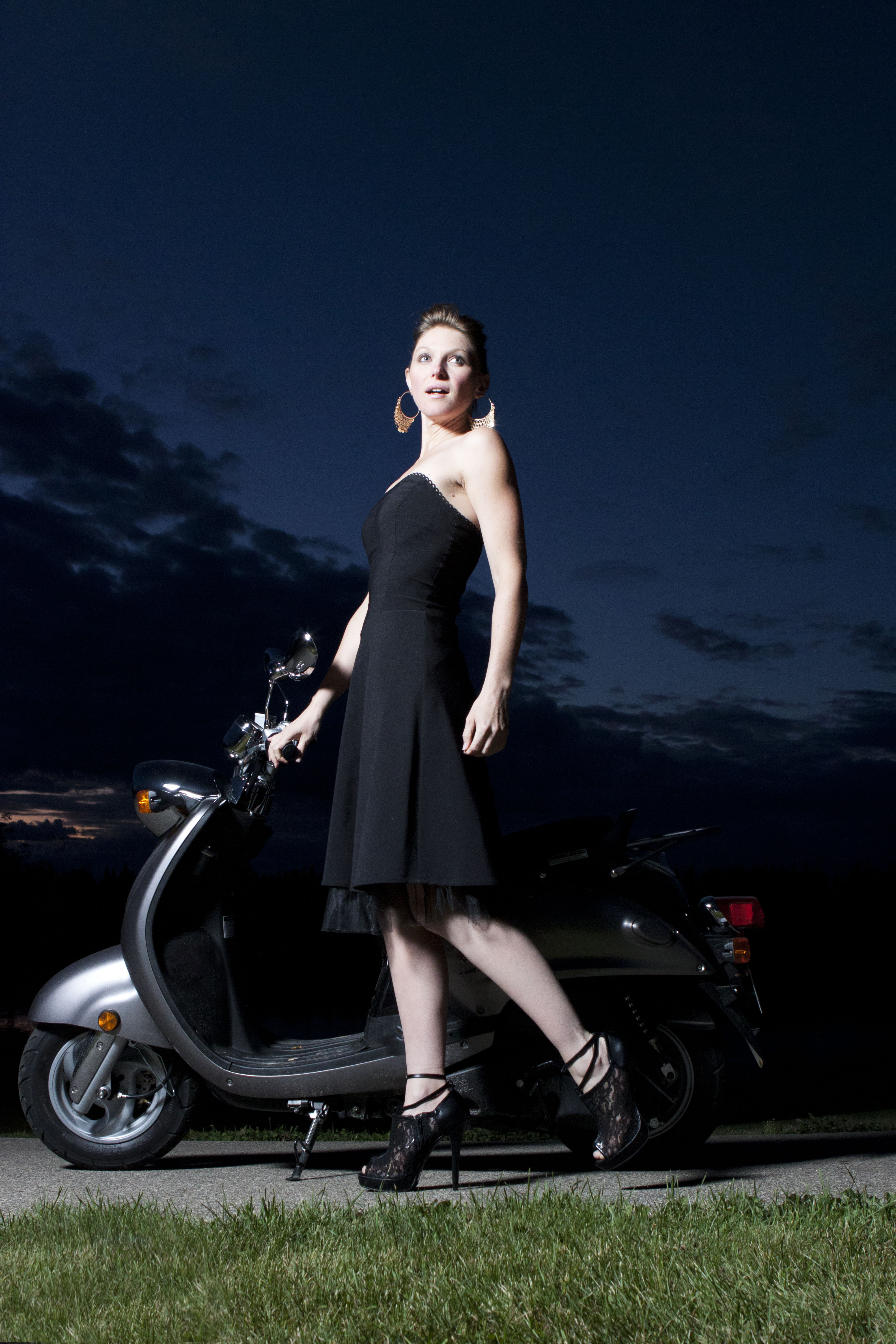 Hello again! In this post I do a photo session with a Kino scooter. Being inspired by my purchase of a new Aprilia scooter, another family member choose to get one as well, my amazing mother. She bought a Kino, had it shipped and began riding! I thought it was the cutest little thing on wheels! Inspiration kicked in, and I wanted to do another shoot using this particular scooter, but instead of a leather jacket, I put a more feminine twist to this shoot. When I do these shoots, I often have a small window of opportunity to do them, and this one was no exception! Hence for all you scooter lovers, I did not have time to give the Kino ride a full cleaning! So you will notice that! When I have a small window of opportunity, it's usually last minute, and a very tight squeeze of an hour or two! I dove in, and quickly decided on this location. I wanted a backdrop with this setting. I loved the clouds and water in the background. We still had some light. With the studio light set up, you could get some depth from the background, rather than just the black background from my Aprilia photo session. I made this shoot playful, fun, and did many different unique poses. The dress, the shoes, and the Kino overall gave off a fun vibe! This shoot could also have been done in daylight with an 85mm lens, an hour or two before sunset, with a cute dress and would have created some beautiful shots! Perhaps one of these days I will create a session like that, but at this time for this shoot, this is the idea that sprang in my mind and I went with it! Enjoy!