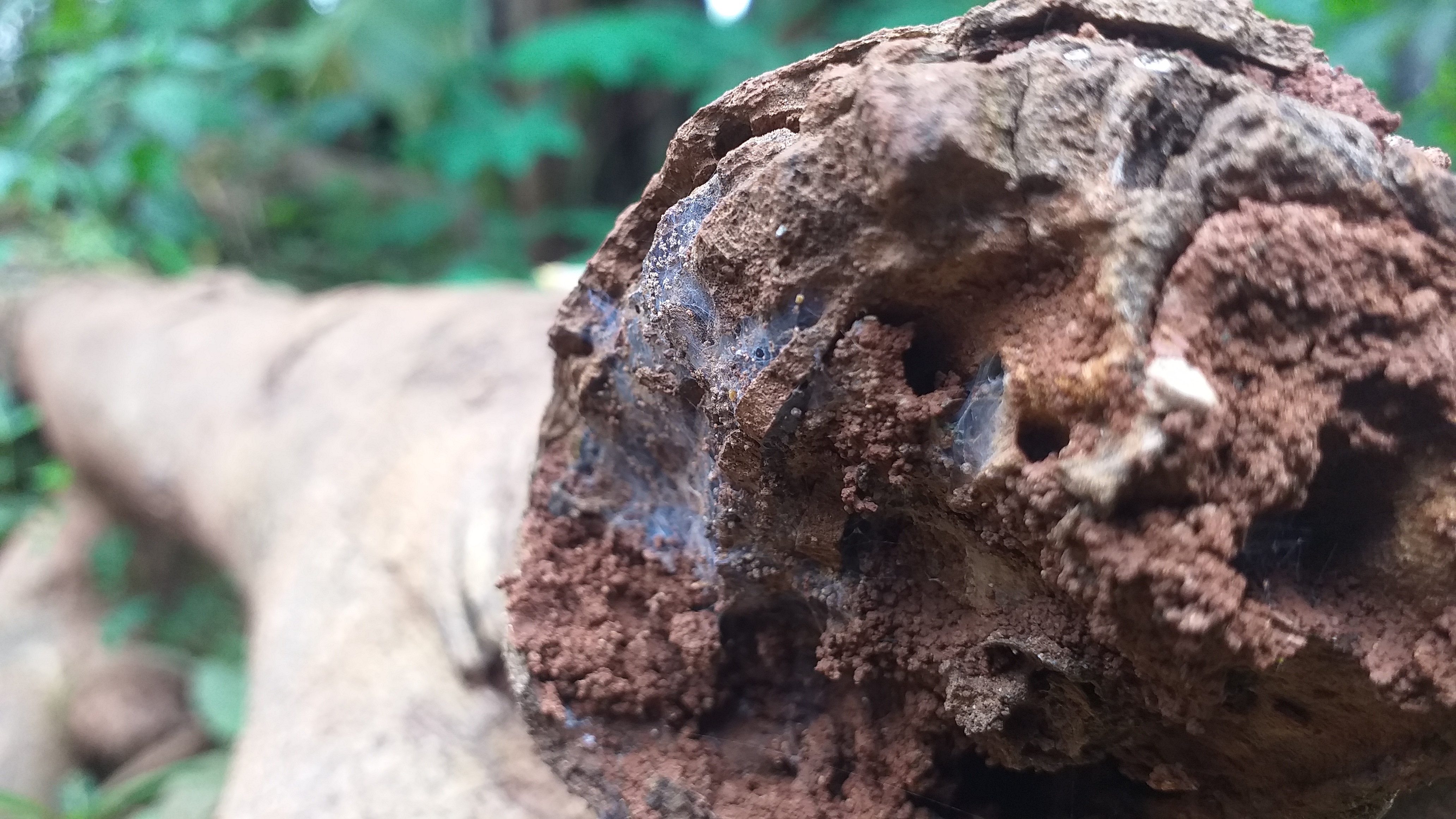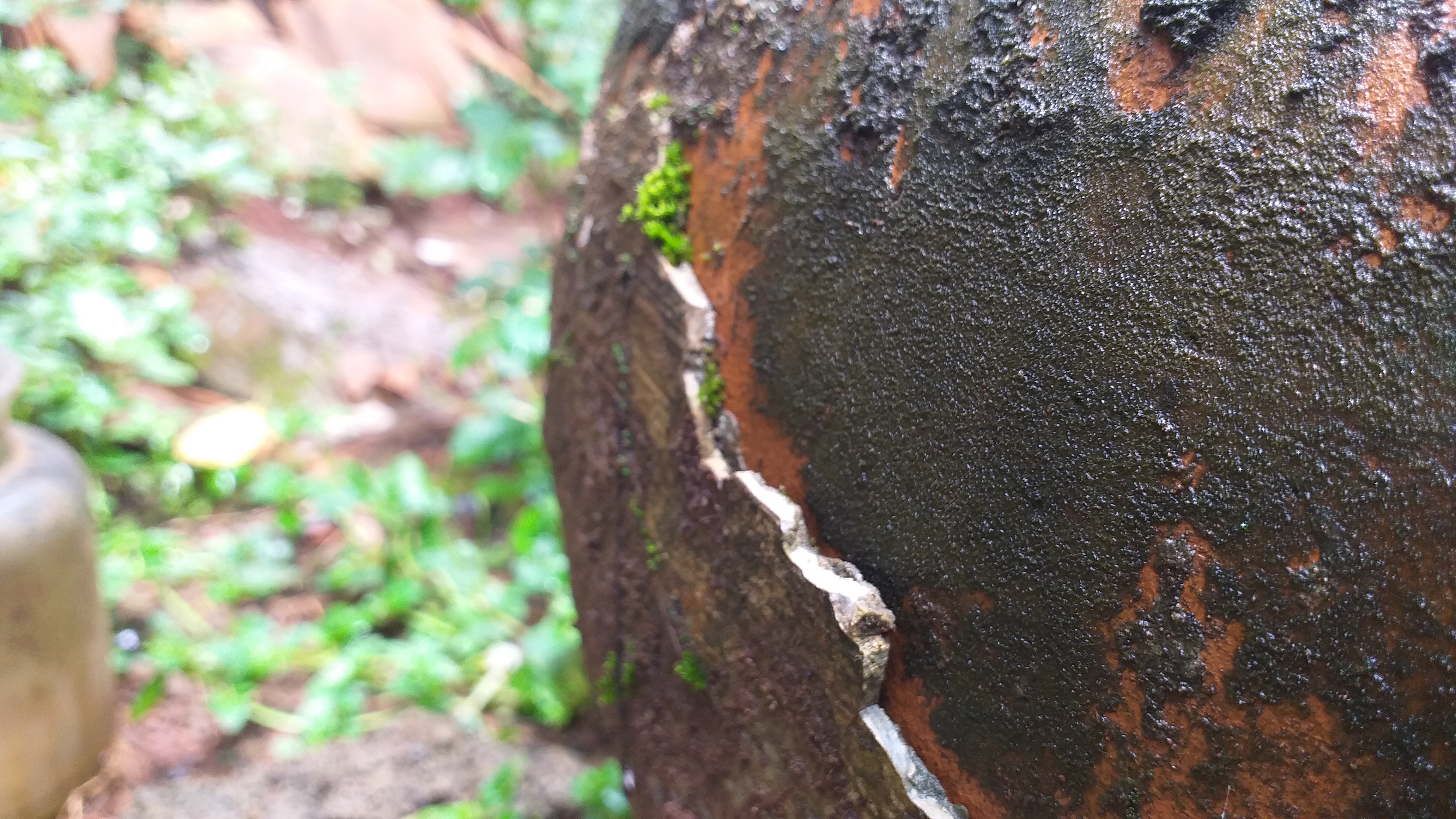 Tidak jauh dari gentong, terdapat kayu tua yang rebah. Juga sudah dimakan oleh cuaca. Tentunya tangan saya tidak tahan untuk mengambil sisi-sisi keindahan dari dunia photography.