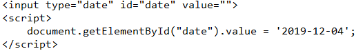 【程序员博客0001】解决html5 下input type为date,设置value值无效的问题kevinwang2019 (39)in #php • 6 years ago html5下input有个新类型 date,用来设置日期的,效果如下: 当你为input 设置value值的时候,不生效,比如设置2019-12-04,效果如下: 但是可以用js的办法来搞定: 最终效果: #js