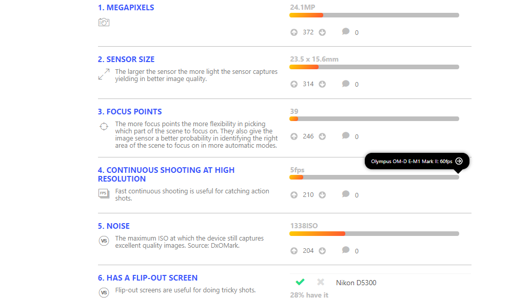 The Nikon D5300 is a 24.2 megapixel DSLR camera with no optical low-pass filter that can record Full HD movies at 1080/50/60p with stereo sound and comes equipped with built-in Wi-Fi and GPS. A high-resolution 3.2-inch vari-angle LCD monitor makes it easier to compose your shots from difficult angles, while the extensive ISO range of 100-25600 should cope with virtually all lighting conditions. A 5fps burst shooting mode, EXPEED 4 image processor, 39-point autofocus system with nine cross-type sensors, 2,016-pixel RGB metering sensor, High Dynamic Range mode, Active D-Lighting, and nine different special effects for stills and movies complete the Nikon D5300's headline specs. Available in three colours, black, grey and red, the Nikon D5300 costs £729.99 / $799.95 / €899 body only, or £829.99 / €1029 with the 18-55mm VR kit lens, and $1,399.95 with the AF-S NIKKOR 18-140mm f/3.5-5.6G ED VR lens.