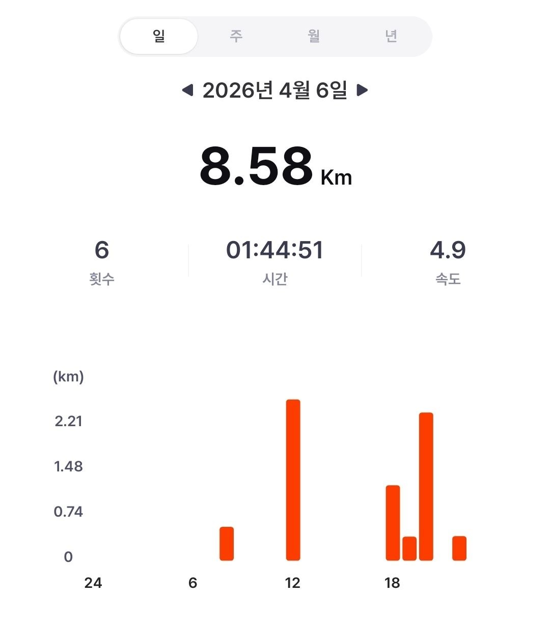 [M2E] 2026/04/06 오운완 8.58 km (일일 목표: 3 km)