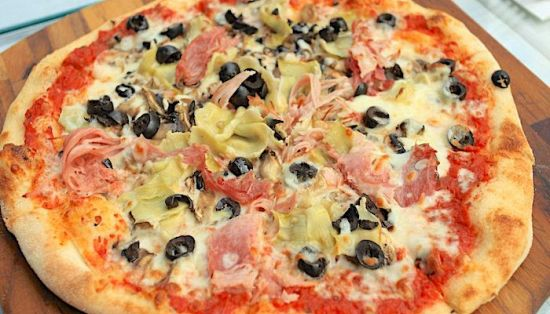 2 Capricciosa. Tomato, mozzarella, artichokes, ham, mushrooms, olives.