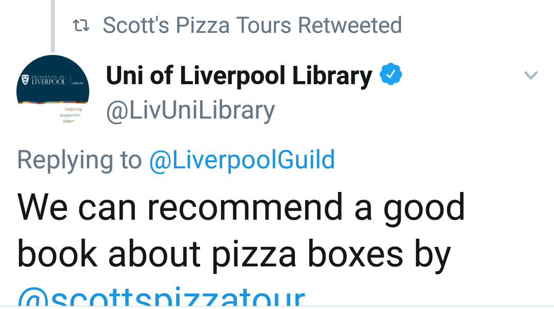 Pizza boxes aside, Liverpool University Library is very interested and interactive with Scott.