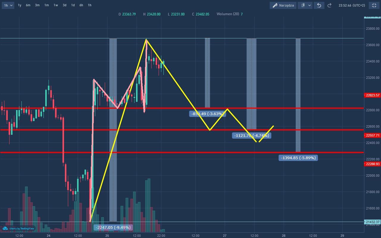 BTC-25-06-2018bogdanwasilewski (44)in #pl-analizy • 8 years ago (edited) Mamy tutaj pierwszą falę w górę. Teraz czekamy na korektę druga falę. Wyznaczyłem turystycznie przedział fibo 3 linie poziome w których powinien poruszać się wykres trendu bocznego. #polish