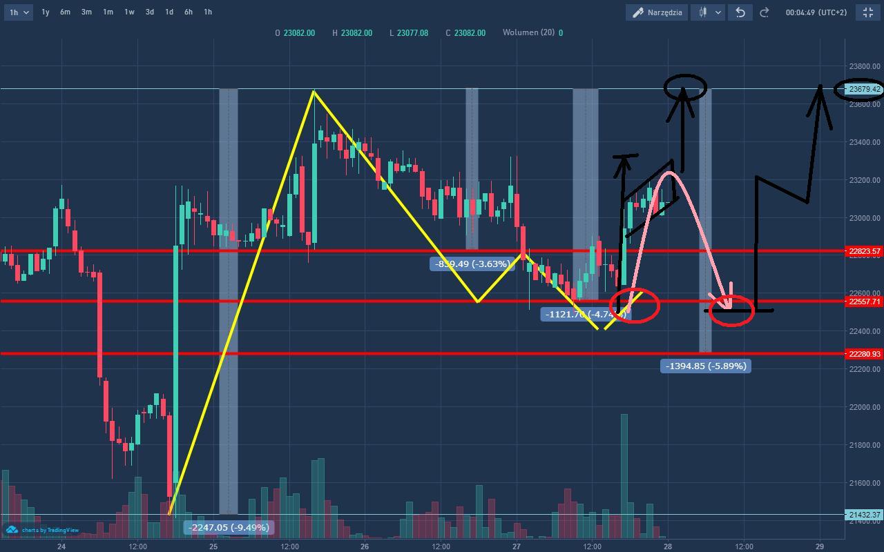 Czyli powinno nastąpić powtórzenie i zaliczenie ponownego dołka który był poprzednio i dopiero tendencja na wzrosty.