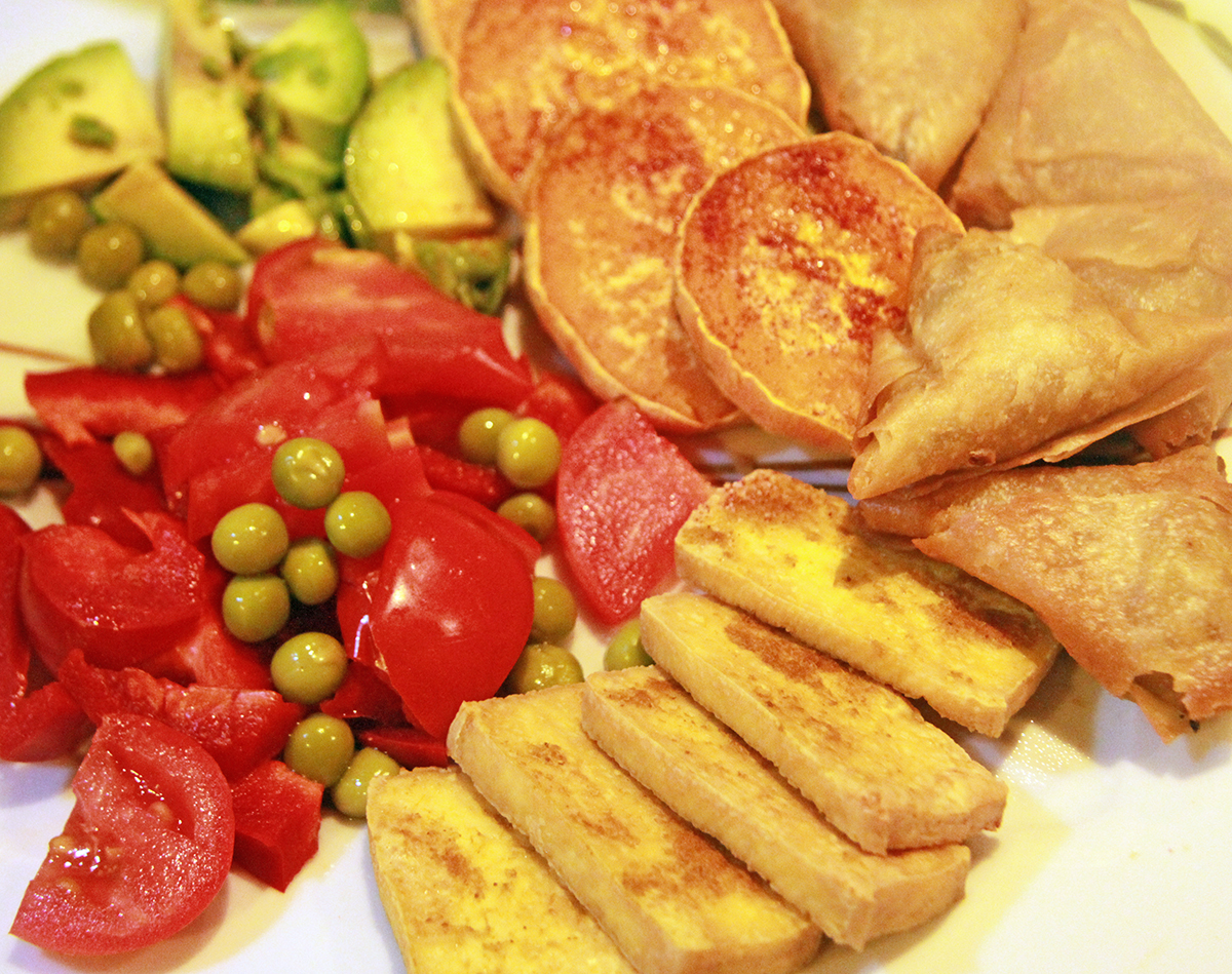 Obiad bardzo "na szybko": do piekarnika włóż "gotowce" - tutaj wegańskie samosy oraz plastry tofu i batata. W czasie, gdy się pieką ogarnij się i ...przygotuj sałatkę ;)