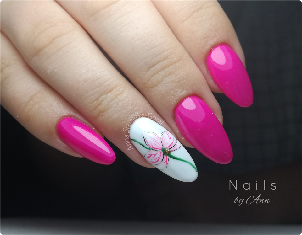 - stylizacja z orchideą - paznokcie przedłużone żelem + lakier hybrydowy