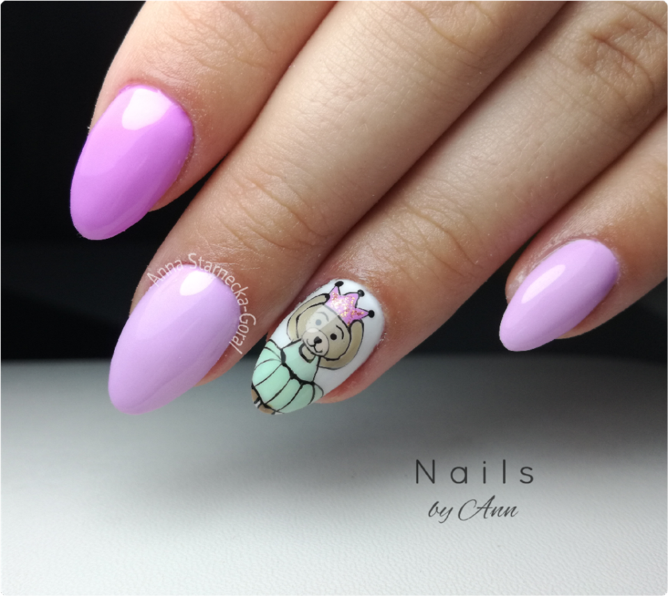 - stylizacja z misiem - paznokcie hybrydowe