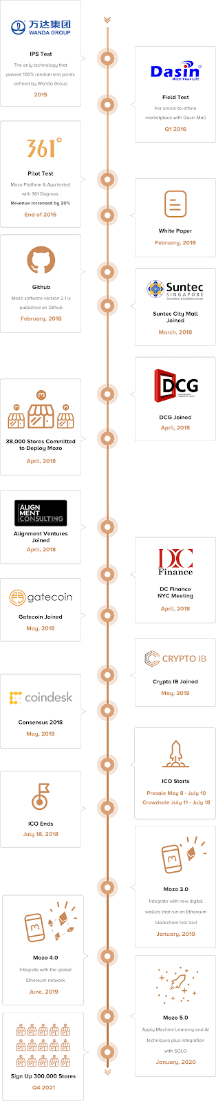 Mozo is a leader in Indoor Positioning System (IPS) technology, having successful results with leading Chinese mall operator, Wanda Group and 361 °, one of China's leading athletic clothing retailers. Strategic partnerships with industry leaders Wanda China, Suntec Singapore, and DCG Korea, put Mozo at the forefront of the retail industry in Hong Kong, China, Singapore, and Korea. With already 38,000 places committed to implementing Mozo, we up to 300,000 places will implement Mozo for the next three years. Our goal is to be the No. 1 blockchain token for the global retail market.