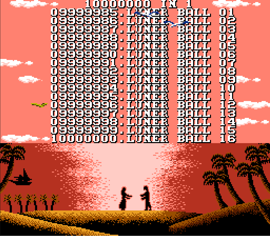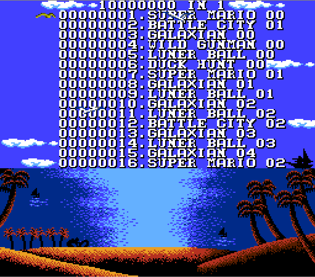 Cała "gra" to kolekcja 10000000 wersji około 10 gier puszczonych w (prawie) nieskończenie długiej liście. Wersje takiego np. Super Mario różnią się takimi pierdołami jak mniejszy lub większy czas na przejście mapy, inny poziom startowy itd.