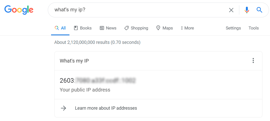 Type "What is my IP address" in the search bar and hit enter.