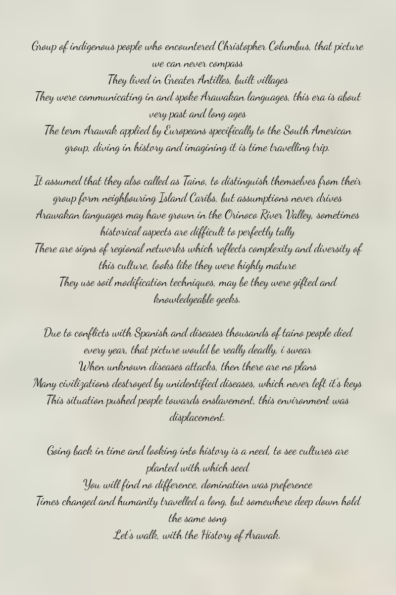 They were communicating in and spoke Arawakan languages, this era is about very past and long ages