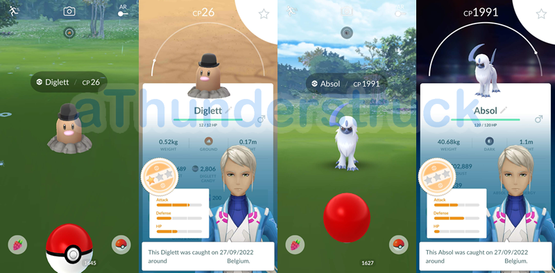 Absol with the costume as wild spawns is sooo awesome though! That allows to catch quite some Absol and work on the candy and look for a good one to Mega Evolve. Well that mostly goes for some of my friends as I do have a 100% IV Absol I once got from a Timed Research. Here are the new costumed Diglett and Absol, these are screenshots of the first ones I encountered.