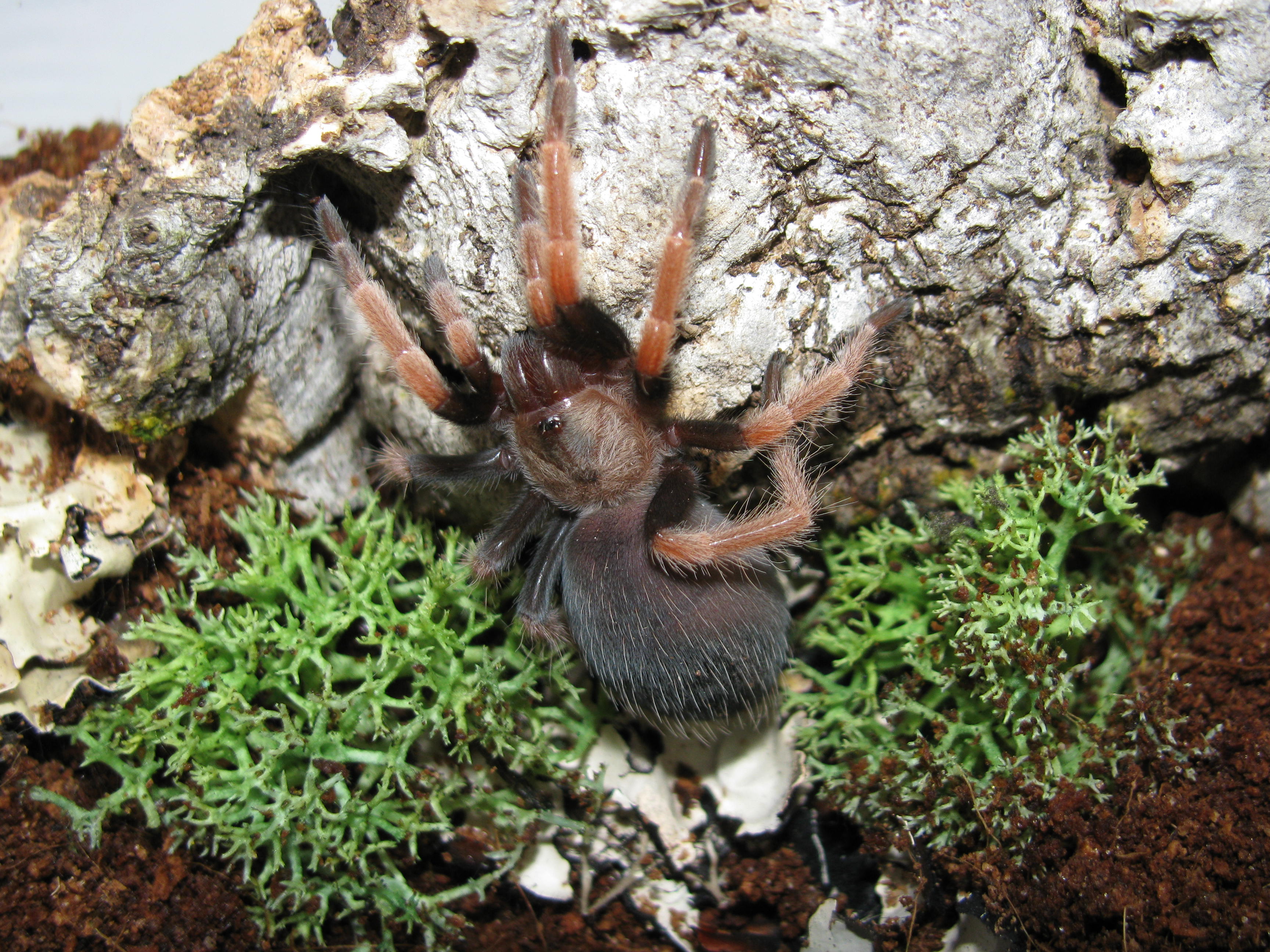 Ptaszniki czerwononogie to jedne z najładniejszych przedstawicieli rodzaju Brachypelma. Posiadają przepiękne czerwone barwy. Z powodu niskiej siły jadu i znikomej agresji polecane są początkującym. Terrarium o wymiarach 30x20x20 nadaje się idealnie do hodowli tego gatunku. Ptaszniki te dorastają do ok. 7 cm długości ciała i ok. 14 cm w roztawie (z odnóżami). Jest to mój ulubiony pająk. Rzadko kiedy siedzi w kryjówce, większość czasu przesiaduje w miejscach dla nas widocznych.