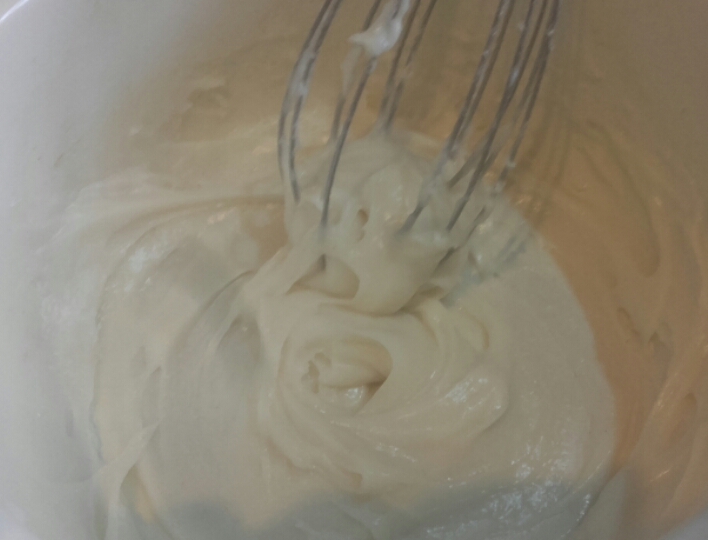Mleka musi być pięć razy więcej niż mąki. (Ja użyłam 20g mąki i 120g mleka). Miesza się je razem na wolnym ogniu do osiągnięcia 65°C. Wtedy ściąga się z palnika i miesza jeszcze jakiś czas. Gotowy Tang Zhong powinien wyglądać i mieć konsystencje budyniu: