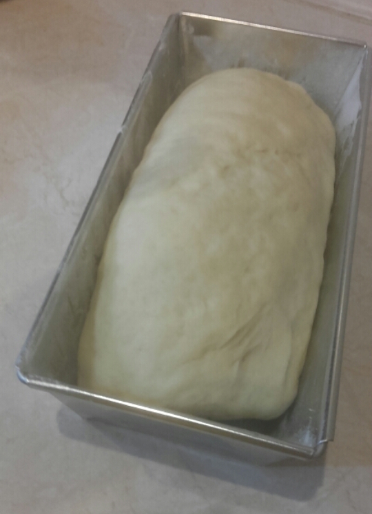 - Włożyć do wysmarowanej masłem i posypanej mąką keksówki (11x25cm) zawinięciem do dołu.