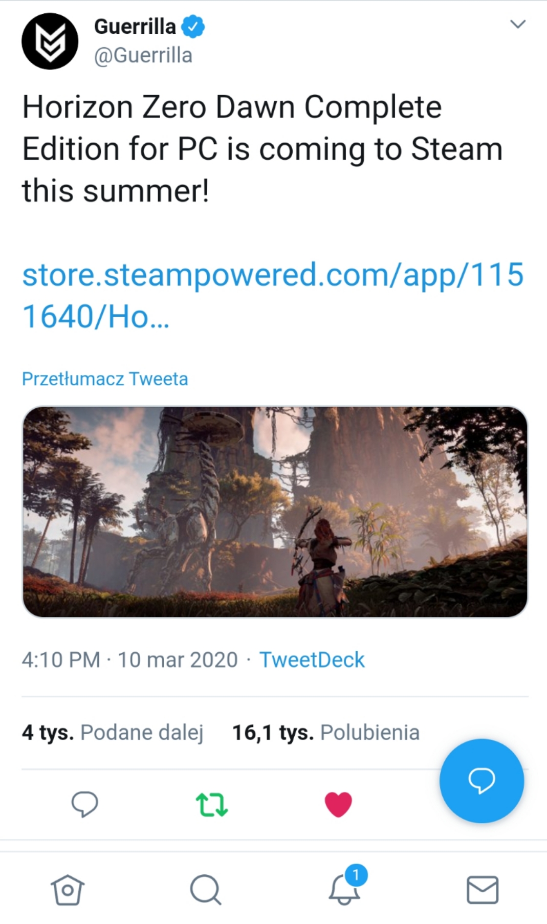 Plotki o tym, że "Horizon Zero Dawn" ma się pojawić na PC były rozsiewane od dłuższego czasu, przynajmniej od początku grudnia 2019 roku. Pierwsze wzmianki o tym pamiętam miej więcej w okolicach Mikołajek, czyli 6 grudnia 2019 roku. Teraz to zostało potwierdzone oficjalnie.