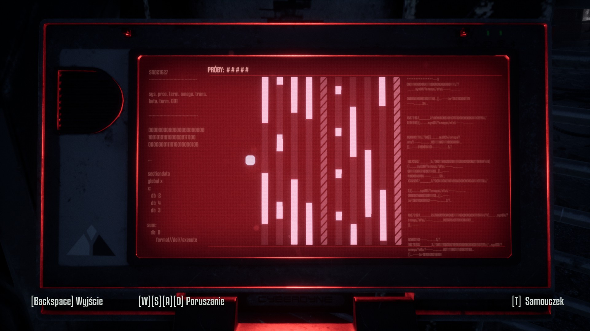 Bardzo fajnie rozwiązali sprawę hackowania wieżyczek obronnych, skrzynek, oraz wejść na posterunki Skynetu. Dzięki komputerkowi do hackowania, który później zdobędziemy w grze, będziemy mogli zdobyć kontrolę nad wrogimi wieżyczkami strzekeckimi Skynetu, oraz otworzymy skrzynie, oraz drzwi prowadzące na posterunki. Żeby zhackować takie urządzenie, będziemy musieli zagrać w małą minigierkę, przypominającą nieco... stareńkiego Froggera wyprodukowanego przez Konami w 1981 roku. Jeśli ktoś nie wie, Frogger to była taka gra, w której musieliśmy przeprowadzić żabkę przez ruchliwą ulicę, a potem przez rzekę. Jeśli przejedzie nas samochód, albo wpadniemy do rzeki... tracimy życie. Tutaj jest podobnie. Naszym celem będzie przeprowadzenie kulki z lewej strony ekranu na prawą. Po drodze będziemy musieli przebyć 8 ścieżek (po 4 na środku jest checkpoint), po których przesuwają się w kierunku pionowym białe prostokąty. Naszym celem jest przemykanie pomiędzy tymi prostikątami. Jeśli któregoś dotkniemy, tracimy życie. Ilość naszych żyć będzie zależna od umiejętności hackowania. Kulką będziemy mogli poruszać w cztery strony, w kierunku pionowym możemy ją sobie ustawiać, a w kierunku poziomym przeskakujemy pomiędzy ścieżkami. Na najłatwiejszym poziomie hackowanie jest nawet przyjemne. Schody się zaczynają przy urządzeniach na poziomie średnim i trudnym. Te prostokąty zaczynają szybciej przelatywać, a niektóre ścieżki bywają krótsze, więc też trzeba się wykazać refleksem. Kiedy to zobaczyłem, to przypomniał mi się "Fallout 4" i gry na komputer Pip Boy 2000, gdzie mogliśmy zagrać w wariacje klasycznych gier z pierwszej połowy lat 80 - "Donkey Kong" od Nintendo, "Pitfall" od Activision, etc...