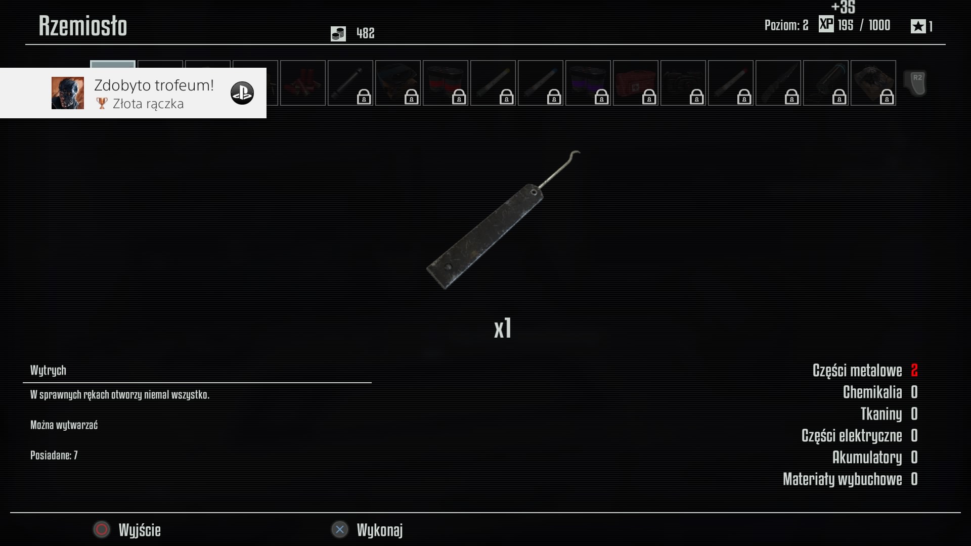 Moim zdaniem bardzo istotnym elementem rozgrywki jest system craftingu, choć uważam, że jest troszkę niedopracowany i zrobiony na odpier... tak aby tylko był. Najważniejsze jest, żeby podczas eksploracji lokacji zbierać jak najwięcej materiałów (części elektryczne, mechaniczne, chemikalia, szmaty, materiały wybuchowe, chemikalia, etc), ponieważ będą one potrzebne do wytwarzania takich przedmiotów jak: wytrychy, apteczki, amunicja, granaty rurowe i tak dalej. Nigdy nie wiadomo kiedy co się przyda. Może być tak, że trzeba będzie wysadzić w powietrze jakąś ścianę, a zabraknie granatów rurowych. Craftingu dokonujemy przy warsztatach, które przeważnie znajdują się w pokojach zapisu gry, czyli tak zwanych save roomach. Na minimapie są oznaczone białą ikonką klucza płaskiego. Na początku mamy znikome możliwości craftingu, gdyż wytwarzanie plepszych przedmiotów musimy sobie odblokować w drzewku umiejętności.