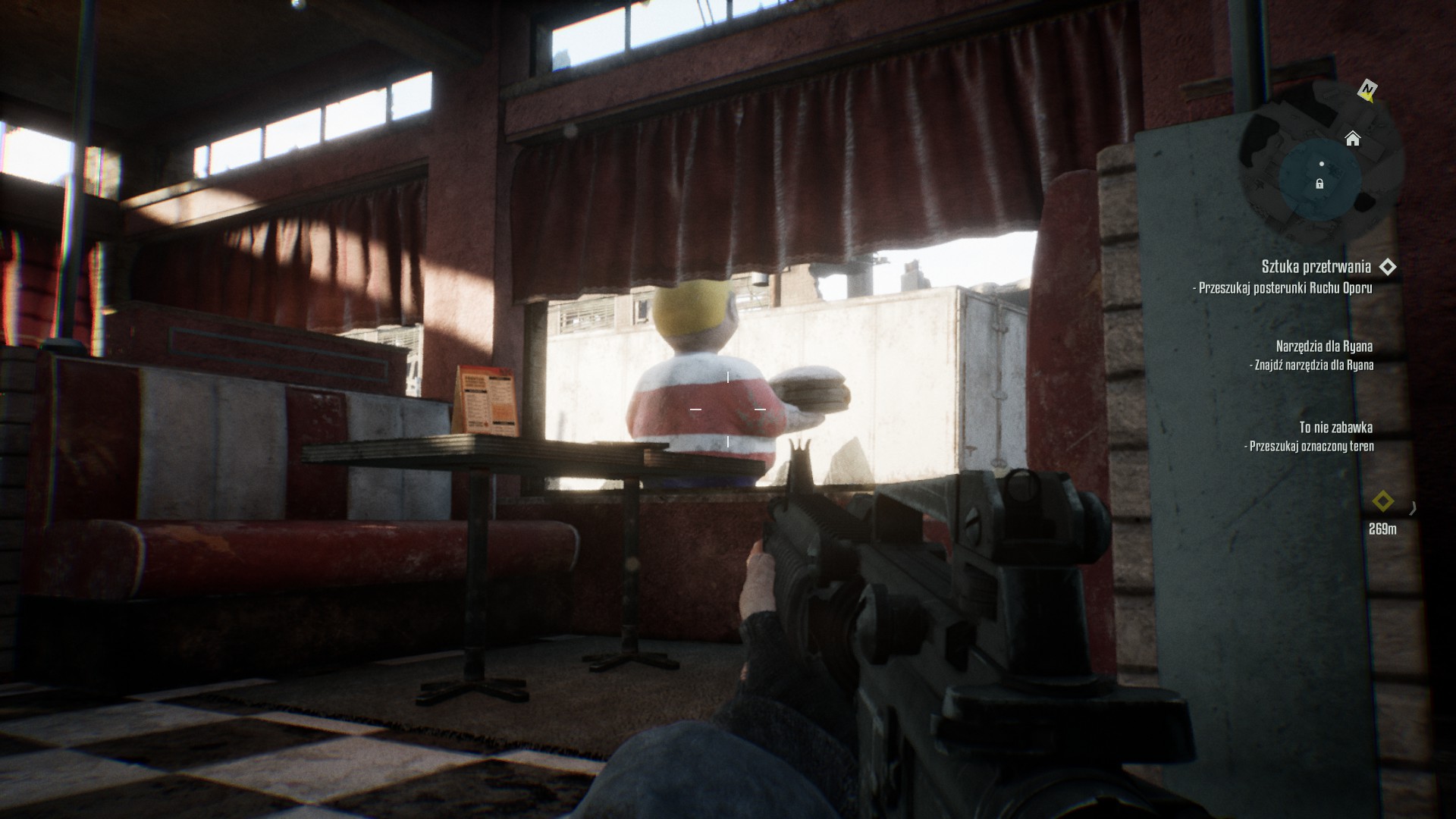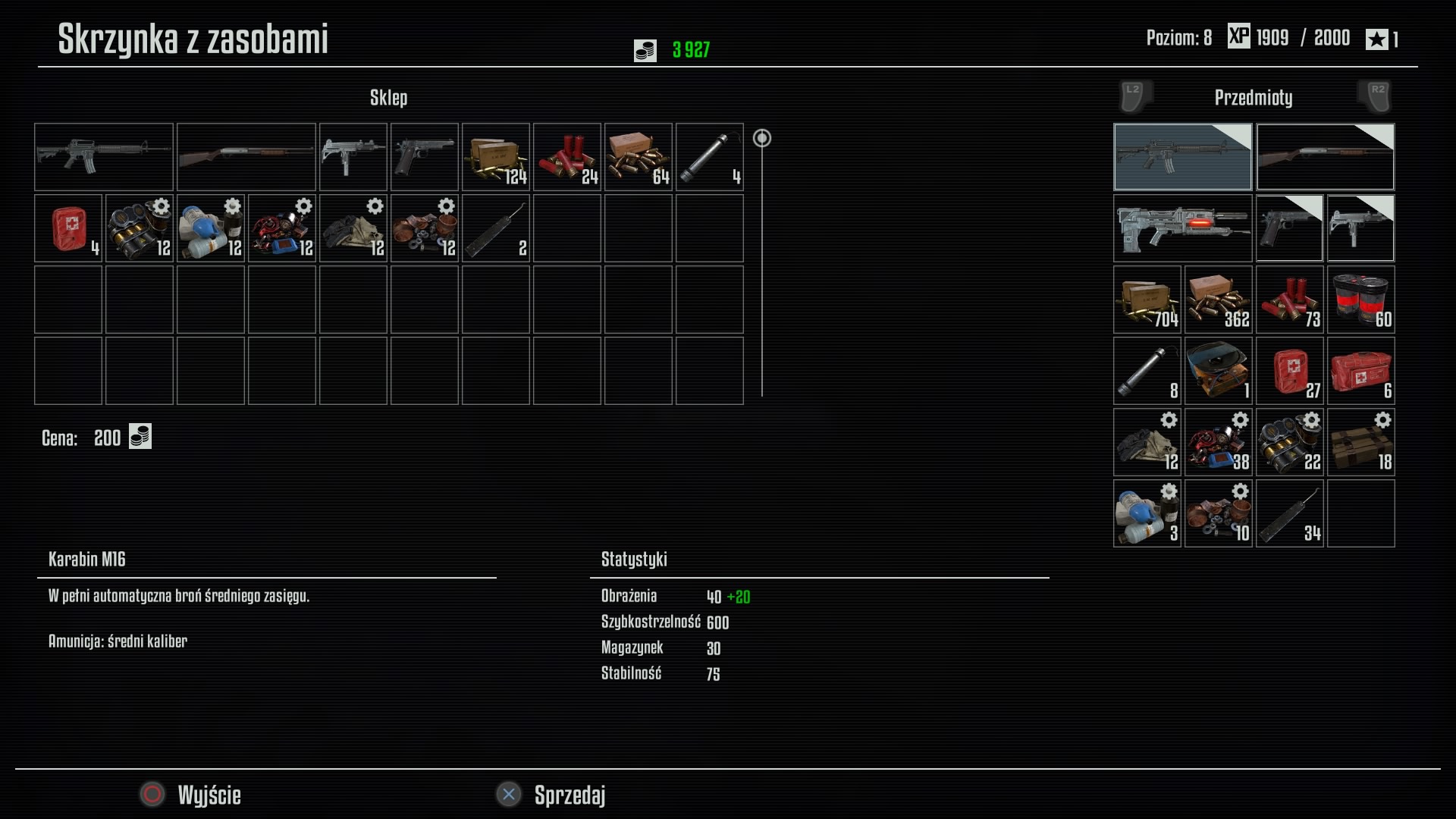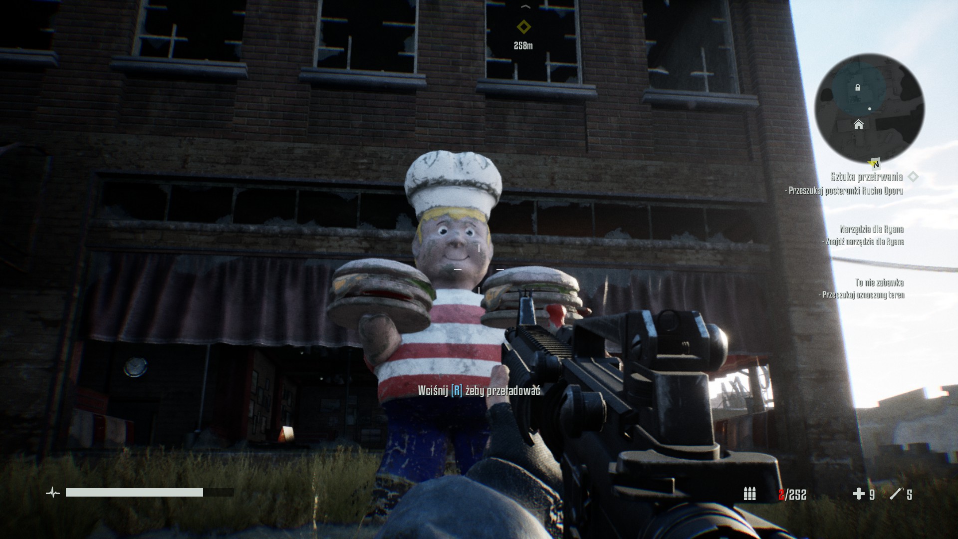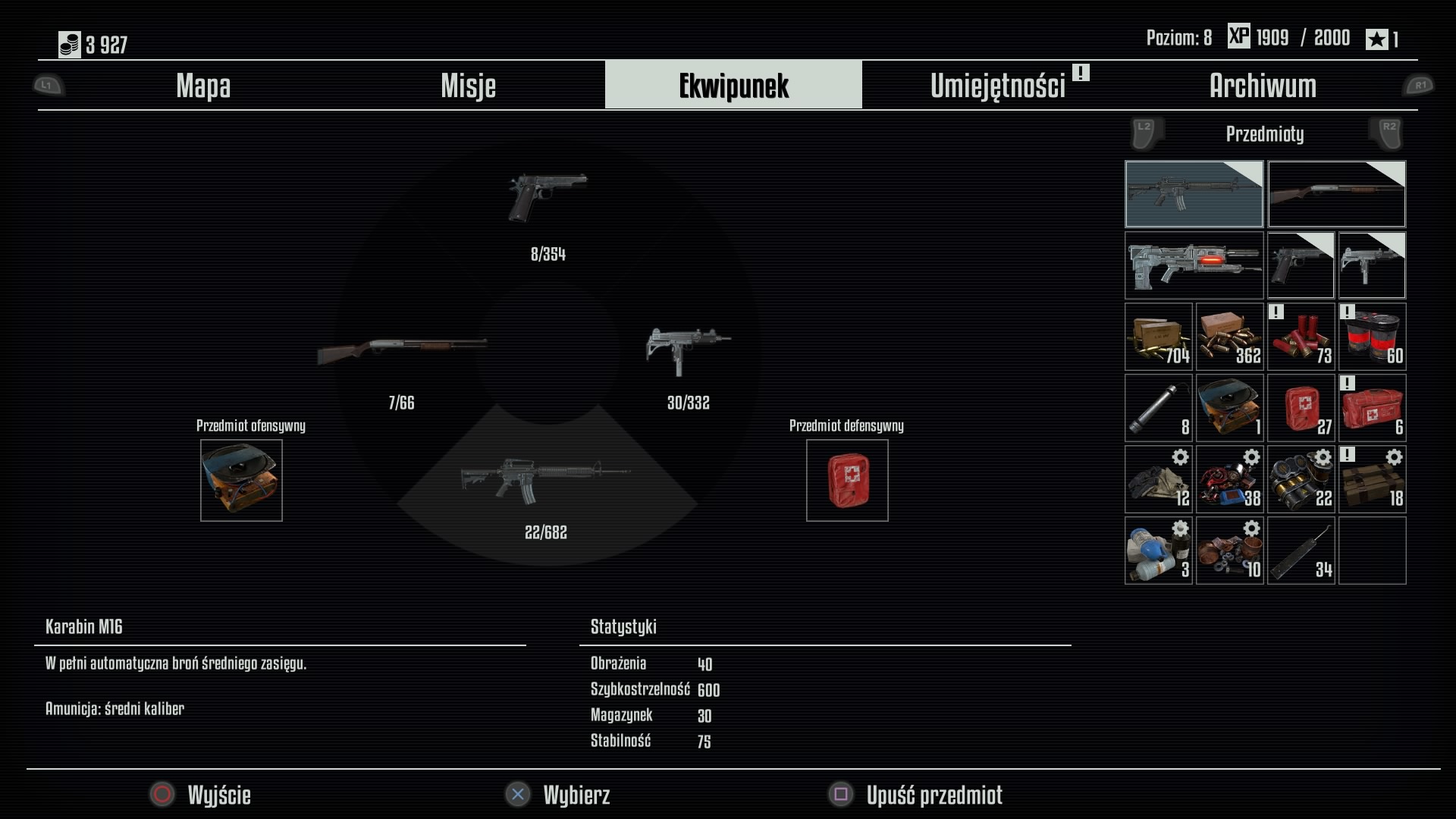 Ponadto gra zapewnia nam tak zwane "koło szybkiego wyboru broni", element dobrze znany chociażby graczom z PlayStation 4. To jest bardzo przydatny element, zwłaszcza gdy się gra w wersję na PS4. W kole będziemy mogli przypisać maksymalnie 4 bronie, ale też możemy je zmieniać klawiszami cyfer na klawiaturze alfanumerycznej, lub chyba dolnym przyciskiem "krzyżaka" po lewej stronie na padzie od PS4. Ponadto będziemy mogli przypisać skróty na 1 przedmiot ofensywny (np. granaty rurowe, wabiki na "srebrzyki" i inne przedmioty rzucane) i przedmiot defensywy (np. apteczka).