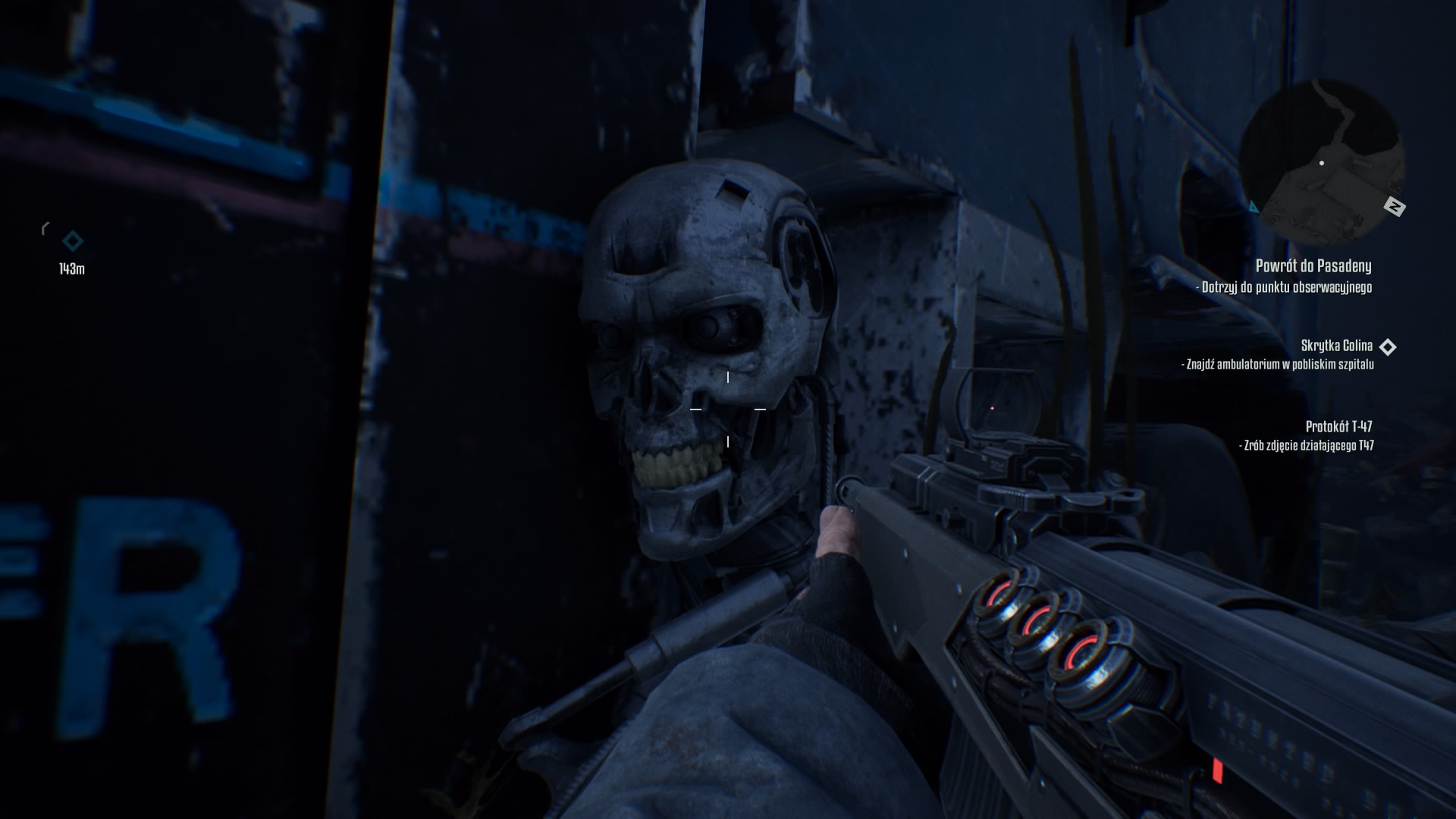 Jeśli chodzi o samą grę, to myślę, że jest to taki mocny średniak. Nie jest to gra zła, ale crap to też nie jest. Parę razy mi się udało zginąć... na najłatwiejszym poziomie trudności, to jest dopiero wyczyn. Nawet na najłatwiejszym poziomie (nie lubię grać na wyższych i się niepotrzebnie wkur... zać) gra jest wymagająca, a zabicie niektórych bossów nie jest proste. Dopiero pod koniec kampanii gra robi się łatwa i warto zwiększyć poziom trudności. W ostatnich misjach Terminatory T-800 nie mogły mi nic zrobić, laserowe pociski z ich pukawek odbijały się ode mnie jak od Supermana. Podczas rozgrywki raczej nie trafiłem na żadne błędy. Kilka razy widziałem "telepiące" się po "śmierci" ciała zabitych terminatorów z rodziny T-800. Niestety z ich inteligencją też nie jest najlepiej, co też już pokazywał Schwarzenegger w pierwszym "Terminatorze" z 1984 roku. Łażą w tę i we wtę, czasem jak nas wykryją to nas gonią i mogą nawet wywarzyć drzwi, ale łatwo się przed nimi schować lub uciec. Inną rzeczą, która mnie irytowała w grze to mimika twarzy NPC, a raczej jej brak. Rozmawiając z postaciami niezależnymi odnosiłem wrażenie, że rozmawiam z terminatorami T-800 niż z ludźmi, zero emocji. Na upartego niektórzy mogą się przyczepić do sposobu chodzenia NPC, ale mnie to nie przeszkadza.
