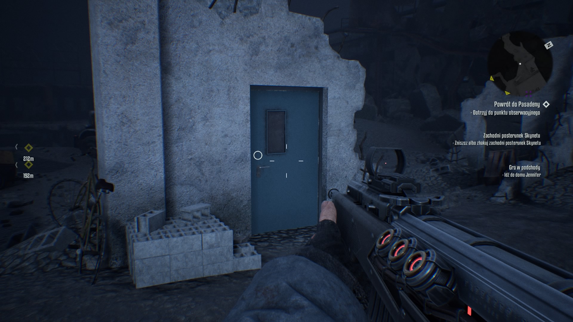Na początku nasza postać jest bezbronna wobec walki z maszynami. Na początku gry zbierzemy stalową rurę, którą możemy uderzać i rozbijać zabite deskami barykady. Po drodze znajdziemy też pistolet i paczkę nabojów, które radziłbym oszczędzać. Pierwsi przeciwnicy, których napotkamy to niegroźne (z pozoru) małe pająki zwiadowcze, które możemy zniszczyć przy pomocy uderzeń stalową rurą, a w ostateczności możemy je zastrzelić z pistoletu. Później pojawią się większe i bardziej opancerzone pająki, które są bardziej odporne na konwencjonalną amunicję. Można je nadal zniszczyć strzelając z broni konwencjonalnej, ale pochłonie to wiele amunicji. Najlepsze na nie będą granaty rurowe (znane chociażby z pierwszej części "Terminatora").