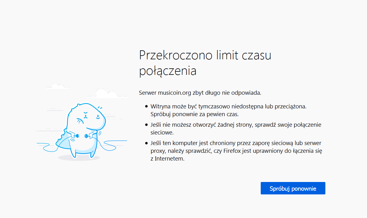 Okazało się, że prawie wszystkim działa. Problem w tym, u mnie nie działa na żadnym sprzęcie. Na dwóch komputerach i dwóch telefonach komórkowych. Zarówno na Internecie z routera jak i z sieci. U mojej żony to samo. Zacząłem szukać wspólnego mianownika. I znalazłem. Play. Zapytałem więc brata, który też ma Internet w Play. Trop okazał się właściwy. U niego też nie działa musicoin.org.