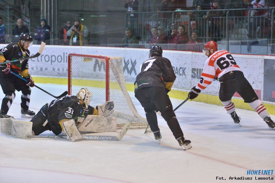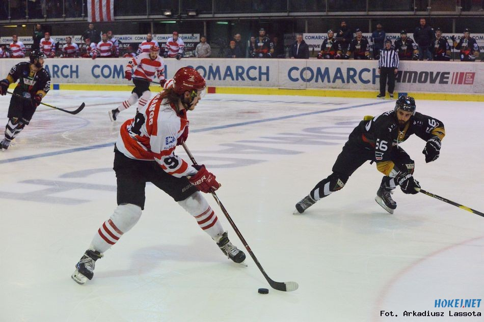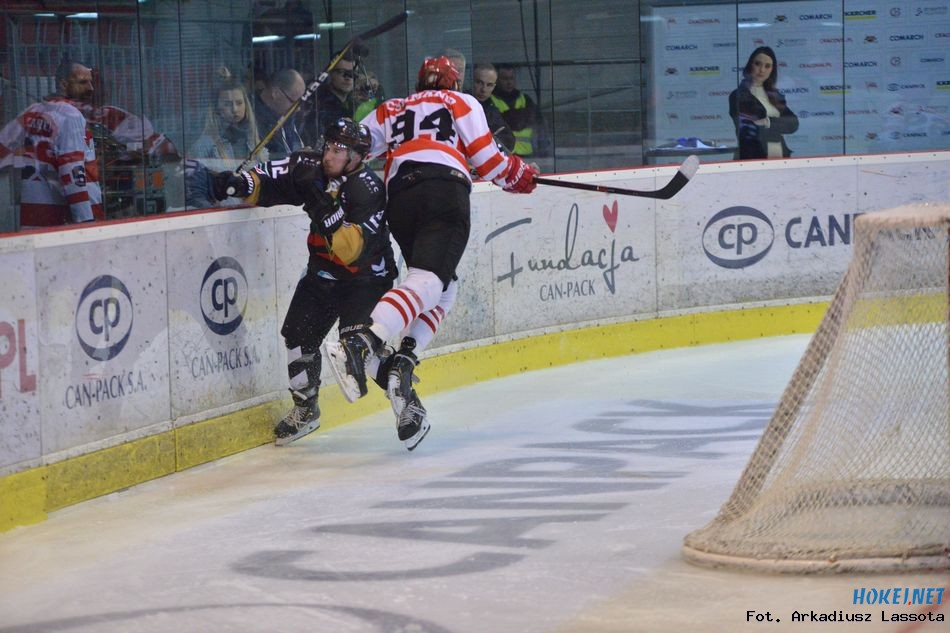 Trzecia tercja jeszcze bardziej uzmysłowiła, że jeden mecz może być konsekwencją tego, co wydarzyło się w poprzednim. Psychicznie zapewne tyszanie czuli się świetnie. W końcu wygrali długą batalię, nabrali jeszcze większej wiary we własne siły. Co z tego jednak, gdy tym razem brakło sił fizycznych. Cracovia obrała na ostatnią odsłonę typową taktykę wybijania rywala z rytmu. Im bliżej końca meczu, tym mniej interesowały gospodarzy ataki, a bardziej skupiali się na utrudnianiu życia rywalom. W ten sposób dotarliśmy do końcowego fragmentu gry, gdy trener GKS-u Andrei Gusow wycofał swojego bramkarza, a szóstka atakujących próbowała jednak doprowadzić remisu. Dość szybko jednak krążek przejęli krakowianie i Mateusz Bepierszcz mógł przypieczętować ich zwycięstwo w tym starciu.