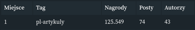 | Miejsce | Tag | Nagrody | Posty | Autorzy |