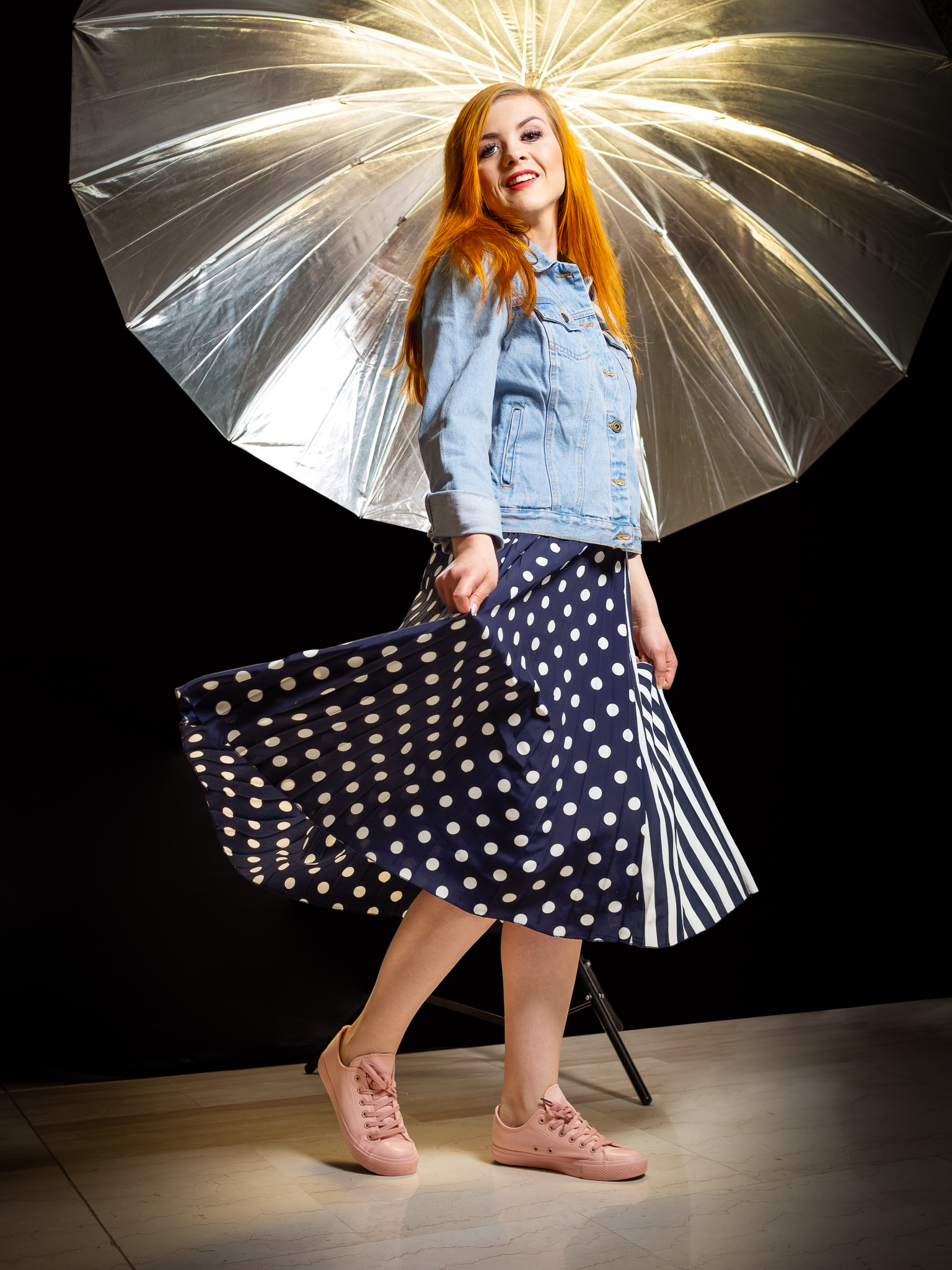Dla osoby jednoocznej ważne jest piękno w sensie postrzegania własnej niepełnosprawności i fizyczności. Czasem ciężko jest zaakceptować drobne defekty swego ciała, dlatego przede wszystkim należy zadbać o własny komfort w sferze mentalnej i psychicznej w kwesti akceptacji fizyczności. Można by brać przykład z Anety, ponieważ zadbany i stosowny wygląd zewnętrzny wiąże się z jej pozytywnym nastawieniem i samopoczuciem. Osiągnąć to można eksperymentując w ekspresyjnych stylizacjach. Idealne dla Anety na codzienne, wiosenne spacery lub spotkania po pracy jest zestawienie kontrastujących ze sobą elementów ubioru. Krótki do pasa model kurtki jeansowej, będący alternatywą dla ramoneski, w połączeniu z modnym krojem wzorzystej plisowanej spódnicy za kolano, sprawia że jest to kreacja zarówno wygodna jak i kobieca. Gdy zestawienie to połączymy z lekkim białym t-shirtem oraz wygodnymi trampkami o ciekawym różowym kolorze, odpowiednim dla przełamania kolorystyki, osiągniemy bardzo interesujący efekt całości kreacji.