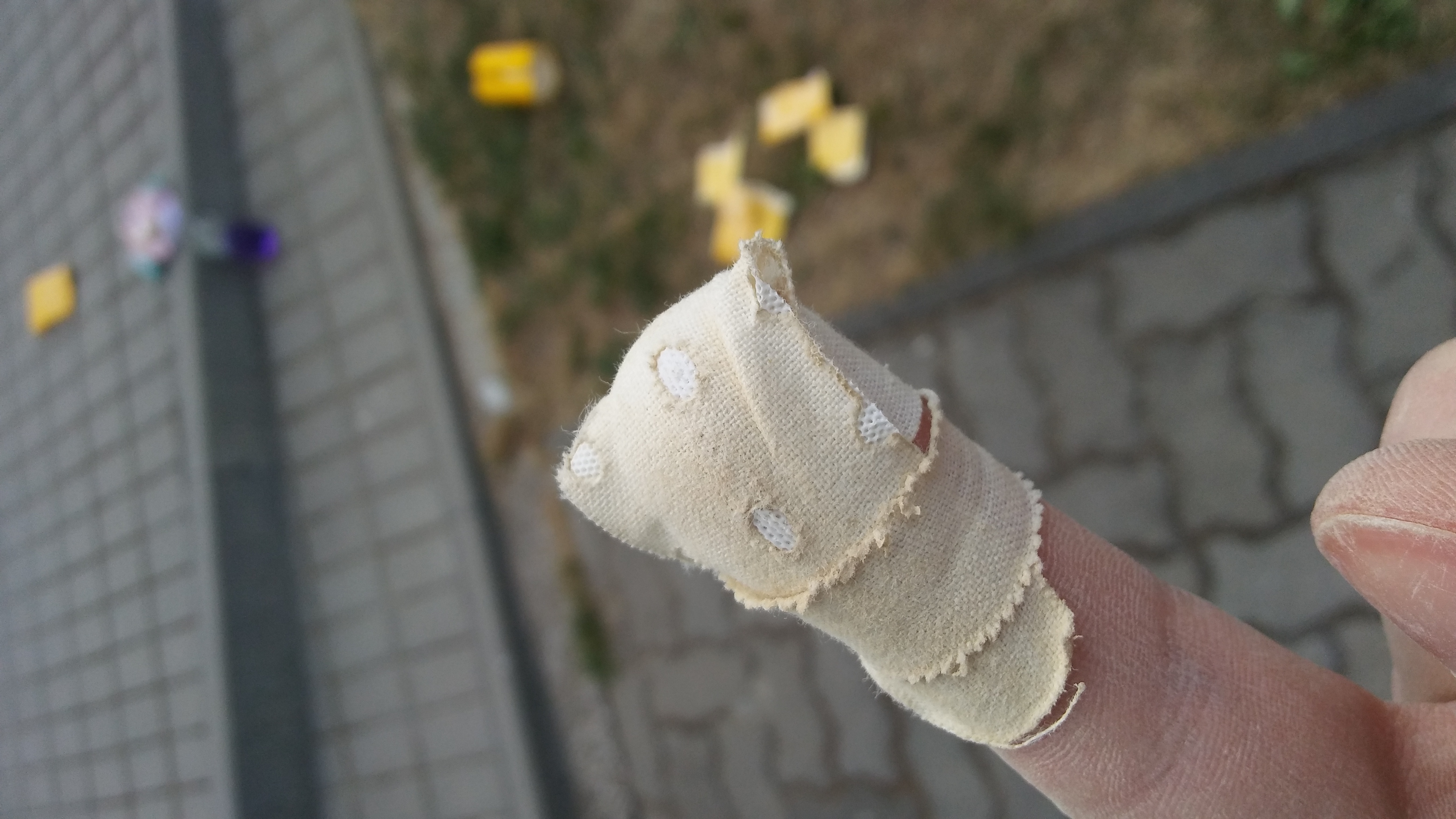 prób zaklejenia palca było -jak widać na bruku- wiele,