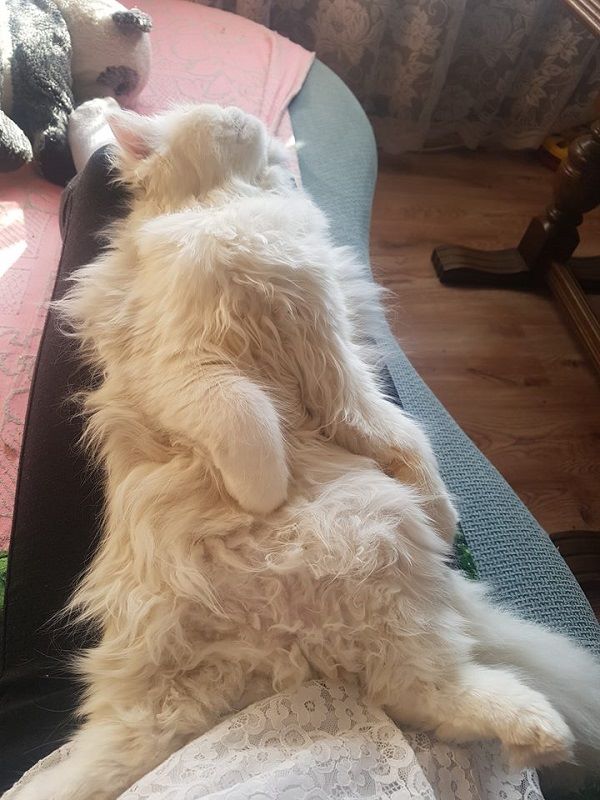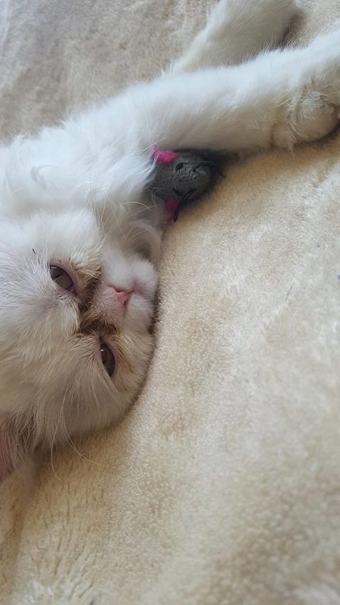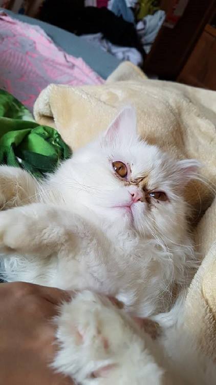 Niestety ta rasa ze względu na niedrożność kanalików nosowo-łzowych, mają one zaropiałe oczka mimo częstego czyszczenia kącików. Nie każde ze zdjęć było robione od razu po czyszczeniu, więc dlatego takie plamy wokół oka. Z czego Neo jest białego umaszczenia i niestety zostają brązowe plamy na futrze których bez specjalnych środków nie da się pozbyć.