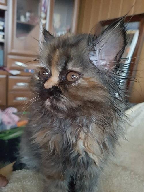 Teraz kolej na Trini. Jest to kotka szylkretowa. Co prawda jest z nami od tygodnia, a już się zadomowiła. Neo także bardzo szybko ją zaakceptował.