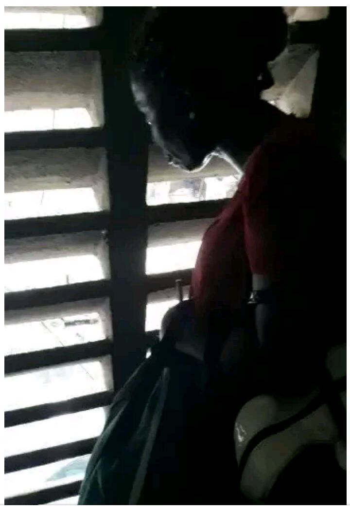 A youth coper who is an INEC staff hiding after being chased by thugs who disrupt the peaceful electoral process