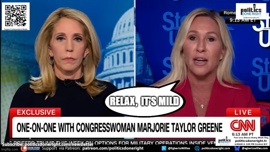 Now that goes counter to what she told Dana Bush in an interview the other day when trying to defend Tucker Carlson, and her own trip to speak at a conference once held by Nick Fuentes. In the interview she told Bush that back in 2022 when she went to speak at the conference she wasn't aware of his views. Which many would consider also as containing outlandish and ludicrous content. I admit I am somewhat aware of things he has said written in quotes or memes produced but if I was going to speak at a conference he was holding, knowing what little I did know, I'd surely take a hard look at what's behind the man before I made such a commitment, and most definitely if I was a representative holding a congressional seat. Fuentes himself came out and countered what she said, having said she was totally aware of his views. In response to all that, she told Bush: