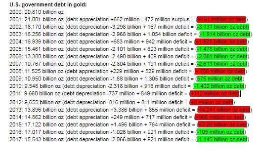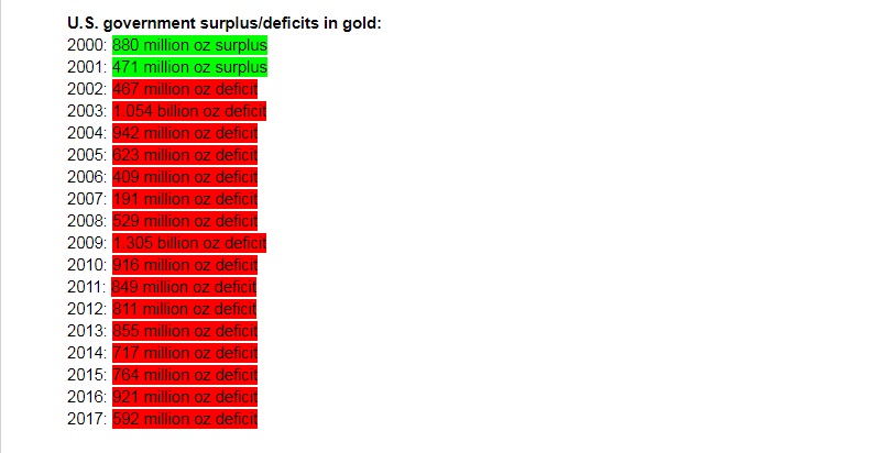 US Government deficits in gold