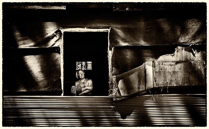 A couple of shots taken of an older friend as he takes a break at an abandoned cabin during a hot summer day while exploring his thousand acre property near Cordova mines in eastern Ontario.