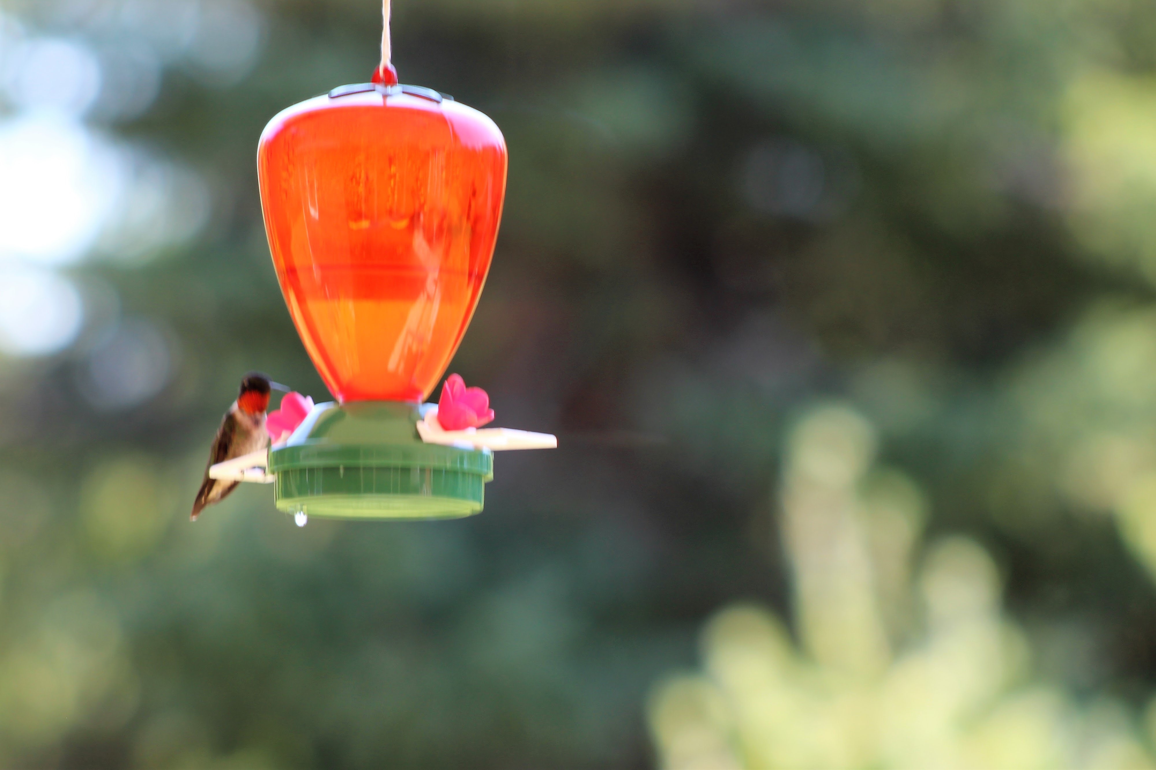Looking out my kitchen window I spy with my little eye something red. It’s the ruby-throated hummingbird at the feeder. These tiny birds are always a delight to see.