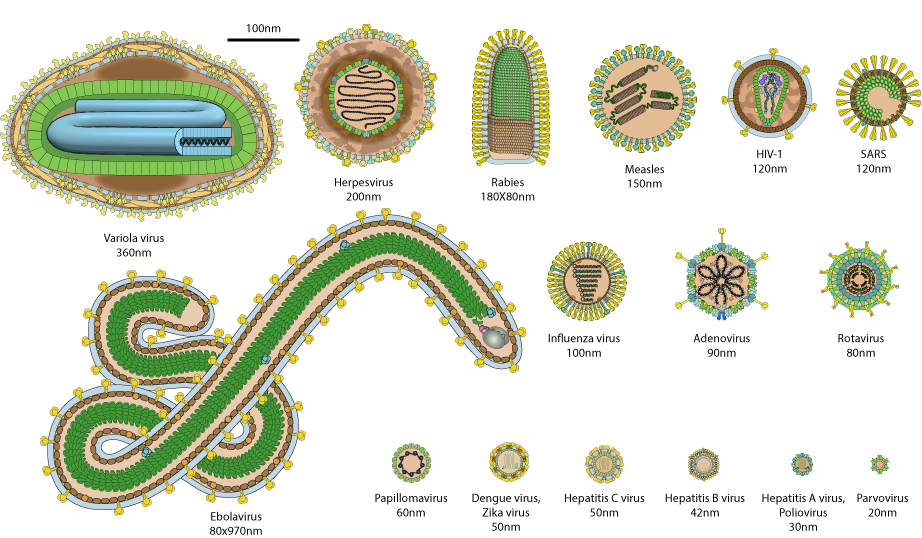 Rabies = 80 nanometers / 0.08 Microns