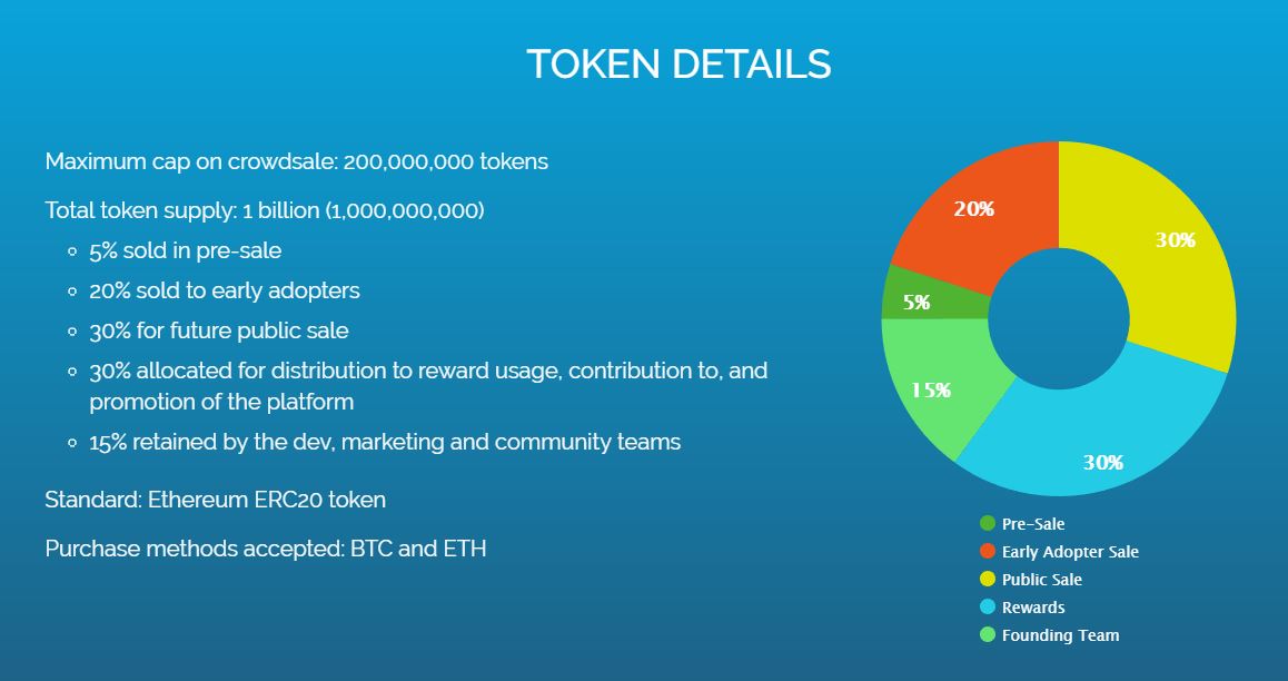 - Tokens will be issued to early adopters to reward usage and promotion of the platform
