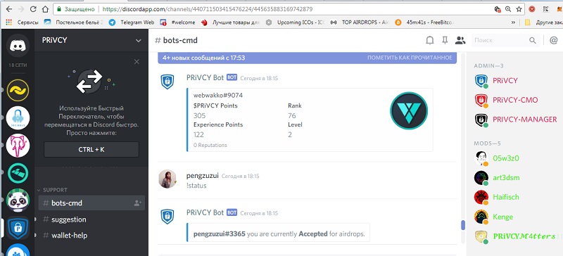They, of course, went this way lately, with the beginning of the 20-week airtime day, which began on Saturday, when they issued 1 000 000 coins to only 781 participants! I believe that for this purpose several more “people” were signed, but the team worked tirelessly and did win-win work on manual checking of EVERY appendix to make sure that there was no https://www.privcy.io/ their scammers, cheats or They have a very active Discord group, which works well, and there are very interesting informative people there. Catfish is with regular distributions that they have in the group on a daily basis, for performing simple tasks such as sharing messages on Twitter, etc. That it is not surprising that it is difficult to displace from the phone! Most importantly, it’s still the beginning in this air shot. We have just completed 3 weeks, and I have no doubt that over the next weeks there will be more people who will join this. Another important part of coins, you can get a bet on coins, which you can get a bet on that you just open your wallet.