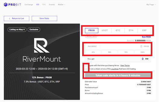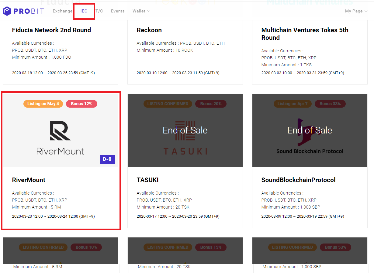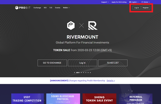 2.2 Move to RIVERMOUNT IEO Page(https://www.probit.com/en-us/ieo/rm-round1/0)