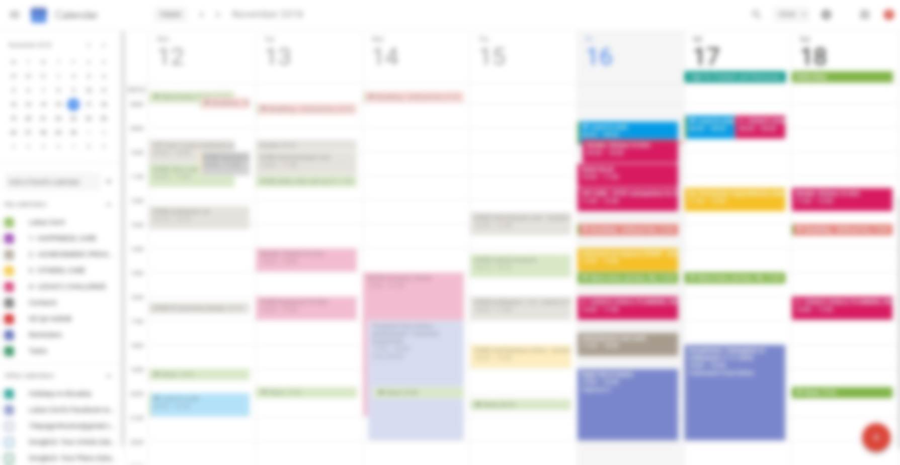 The pink ones are the important tasks, that will improve my business over time — my own goals. Other ones are standard work for clients. See the problem already? No? There’s a strange grouping of the important tasks towards end of this week. Can you guess why?
