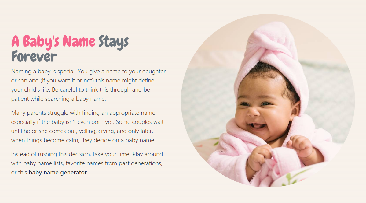 After creating a simple pen name generator and playing around with a text spinner for tweets, I wanted to do something different. Many friends of mine are in the process of becoming parents now, including the choice of a name for the baby.
