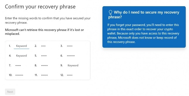 Source: And in this photo you can see that it can be set up in the same way as all other crypto wallets, the keyphrase is the most important!