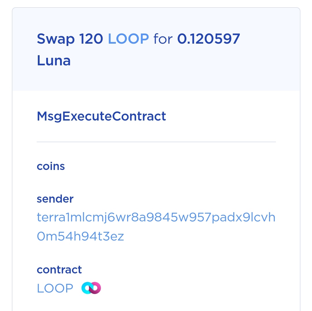 terrafinderSometimes i kept swapping some of my tokens (Loop) into Luna just to acquire more Luna tokens because I had strong believe that it will definitely be more valuable