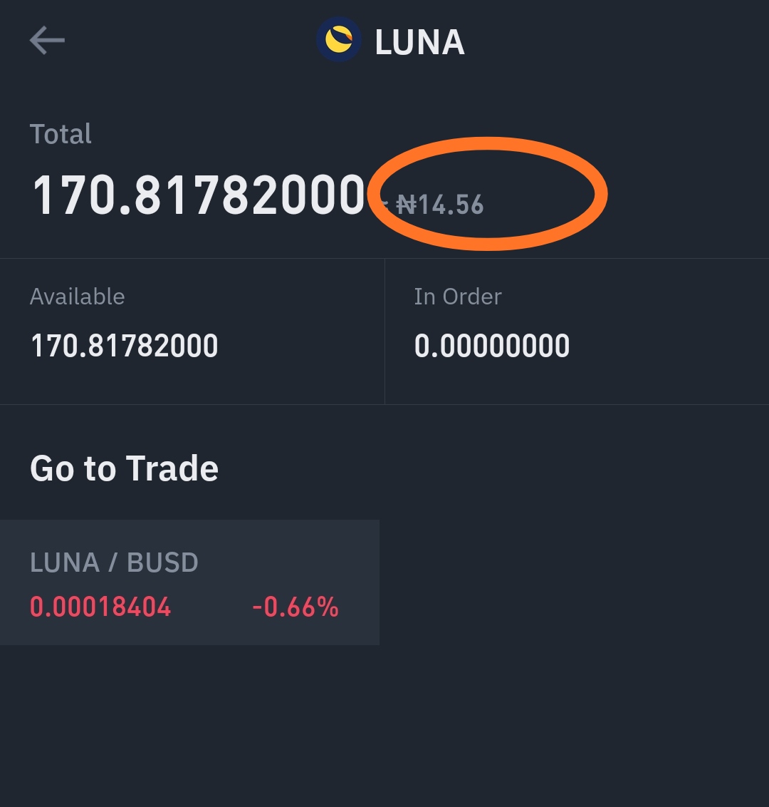 I already knew it's actually a great risk probably a 50:50 betting game. It's either i loose completely or I gain, I decided to fund my Binance account with almost $16 just to buy more Luna tokens since I love taking risk, but this time the risk took me 😄. I saw my $16 dropping down to 14 Naira which is equivalent to $0.035