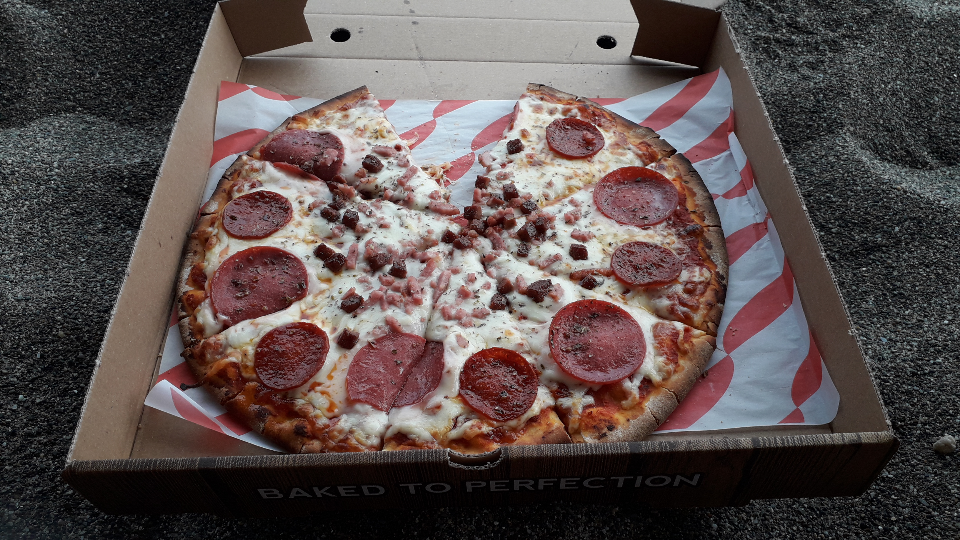 I thought I would share with you just a few photographs of the journey home and some wild horses we saw yesterday and a pizza on the beach one evening.