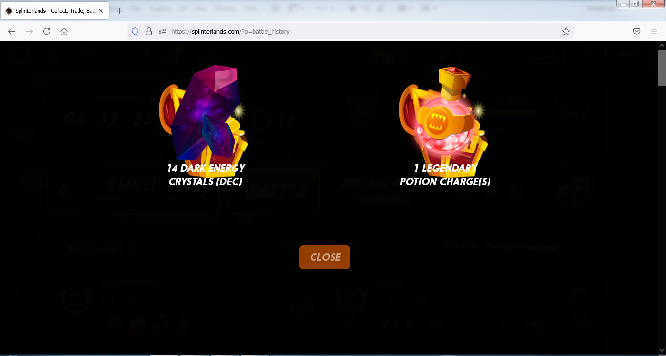 6/11/2021 My rewarts are one potion and 14 DEC .